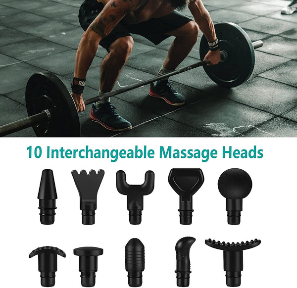 Massage Gun for Athletes, Deep Tissue Muscle Massager for Body Muscle Pain Relief with 30 Speeds, 10 Heads